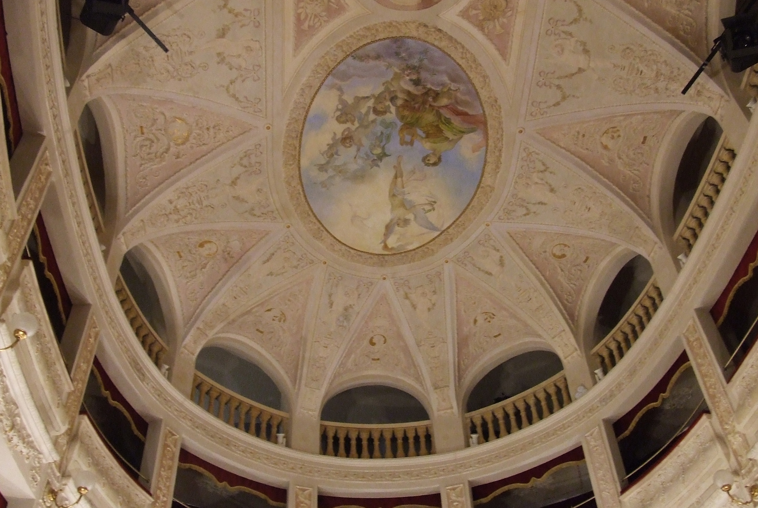 Immaginate un teatro: di quelli classici, con palchetti decorati, soffitti affrescati, sipario rosso di velluto. Immaginatelo maestoso, grande….no, non ci siamo. Il protagonista di questo post ha tutto del teatro come di solito ce lo si immagina, tranne le dimensioni: è piccolissimo ed un vero gioiellino anzi una bomboniera. Situato nella parte alta della città di Amandola (FM) il teatro La Fenice nasce come teatro condominiale, realizzato cioè dalle famiglie abbienti dell’epoca per potersi godere gli spettacoli.
