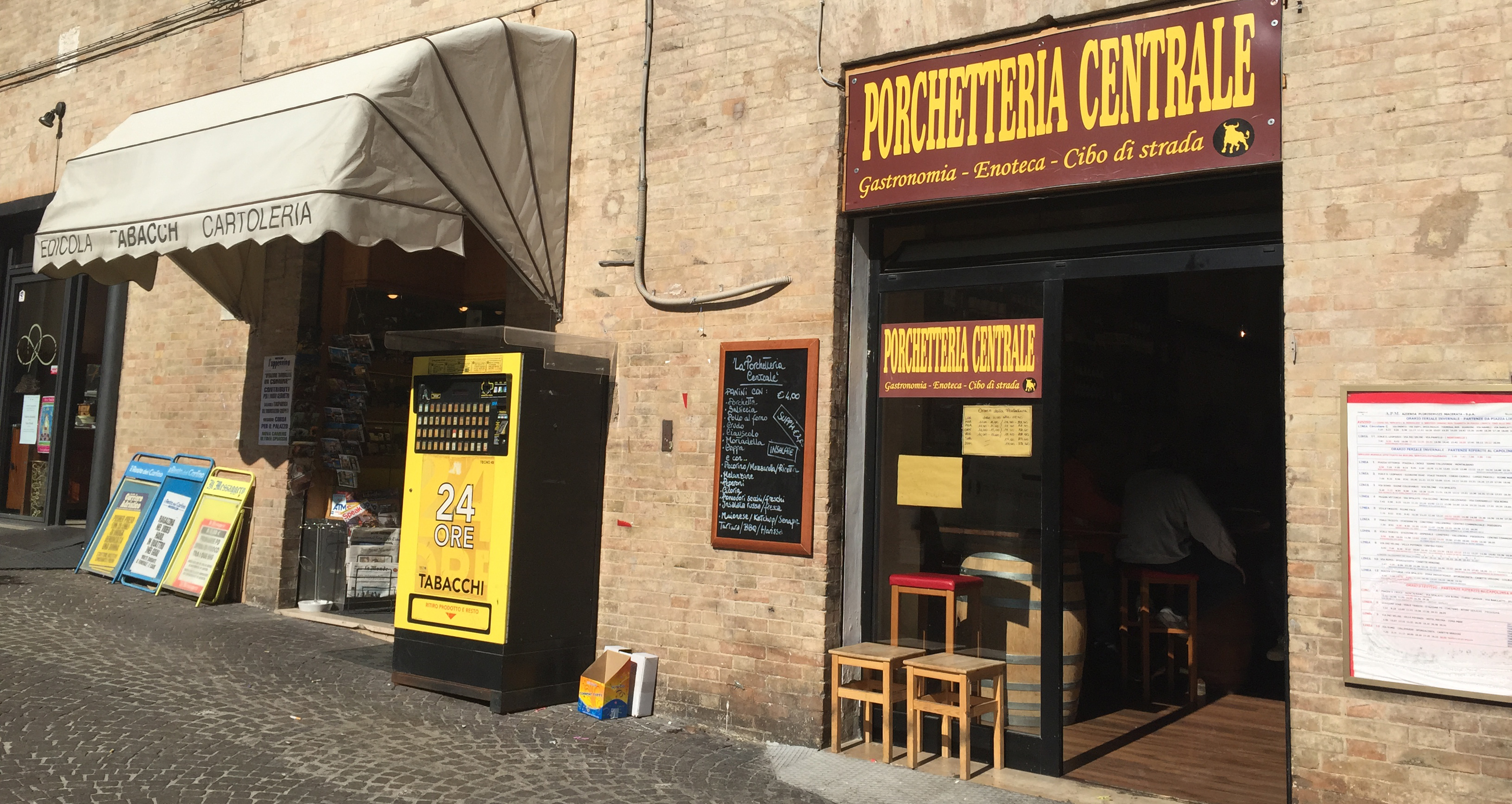 Finalmente! un luogo in pieno centro aperto anche la sera dove poter prendere cibo da strada, locale e ottimo, a prezzi contenuti: a Macerata, piazza della Libertà,trovate la Porchetteria Centrale.