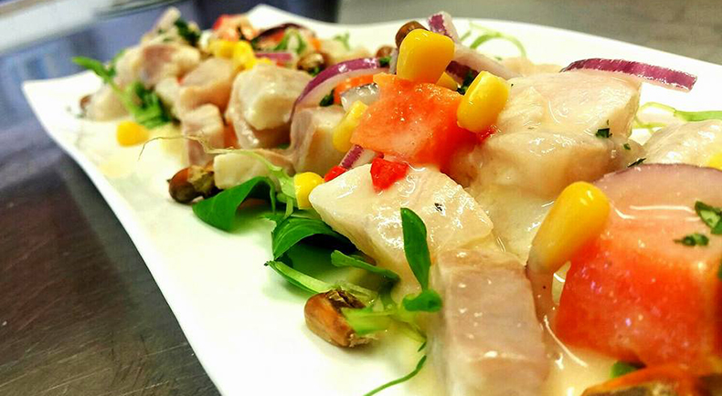 Il Ceviche (l’ultima novità!), un piatto tipico del Perù che utilizza pesce crudo marinato nel lime e spezie, di cui io so per certo la presenza di peperoncino e coriandolo. E da lì, con un volo in Giappone, andrei ad assaggiare il Tetaki di pesce spada con mostarda di Fichi.