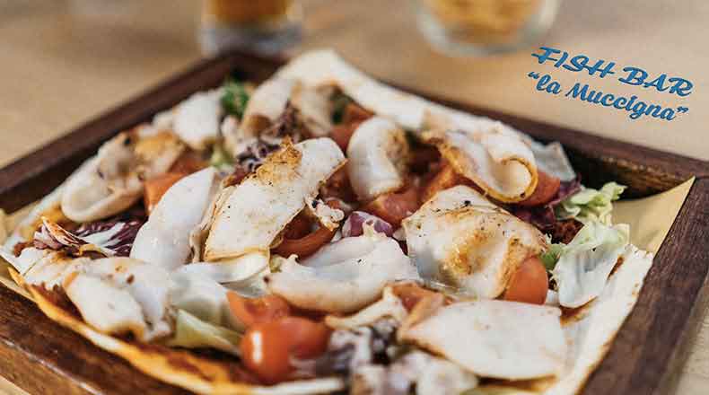 Già il nome è particolare, si chiama MUCCIGNA che nel mondo “marinaro” indica l’ultima calata di reti che fanno i pescherecci prima di rientrare in porto (quella che solitamente raccoglie pesce non pregiato) e che in dialetto civitanovese ha assunto l’accezione di “cose di poco valore”. Perché è stato scelto? Per non prendersi troppo sul serio e specificare che la loro cucina di pesce è originale ma non pretenziosa, più accessibile nel prezzo e forse più sfiziosa e insolita nel gusto.
