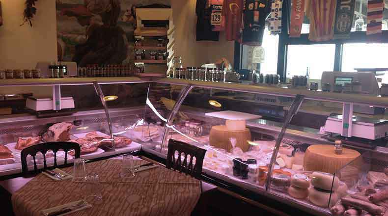 Un localino raccolto i cui tavoli si affacciano o su una allegra veranda o accanto alla vetrina dove sono esposte carni, salumi dei sibillini e formaggi rigorosamente Made in Marche. A metà tra una macelleria, una bottega (c’è la possibilità di acquistare anche vino di qualità esclusivamente marchigiano, olio, salse, marmellate di produttori locali) e una rustica osteria dove la trasparenza impera: quello che vedi puoi mangiare o portare a casa. Desideri una bistecca marchigiana? Basta guardare, scegliere il pezzo, fartela pesare, sederti al tavolo e aspettare con un buon calice di Rosso Conero il tempo di cottura consigliato per la carne. Desideri qualcosa di più creativo? La tagliata o il filetto alla crema di pistacchio sono davvero un must, ma se ancora non ti basta trovi altri 16 tipi di accostamenti, tra cui crema di fave e guanciale, crema di ortiche e per chi ama osare… castagne e miele o fragole e riduzione di balsamico. Il tutto accompagnato da erbe di campo appena portate dal contadino e, perché no, salvia fritta.