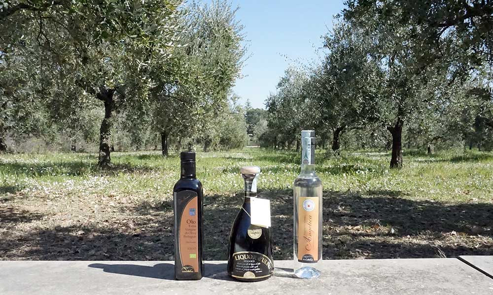 Da una ricetta di famiglia custodita gelosamente, nasce un prodotto davvero unico ed estremamente piacevole: il Liquor d’Ulivi. Utilizzando le foglie e la corteccia dell’ulivo (non l’oliva) realizzano un liquore dalla gradazione di 30 gradi, molto elegante, discreto e profumato. Un colore ambrato e un sapore balsamico per questo liquore dalle proprietà digestive.