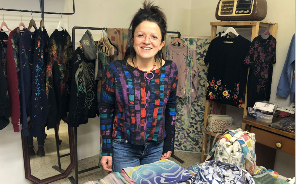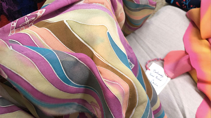 Fosca Tittarelli è una giovanissima artista e designer di Cingoli che dipinge a mano i tessuti con la tecnica del batik, realizzando preziosissime sciarpe di seta, vestiti, borse e accessori. Un esempio imperdibile di Made in Marche.