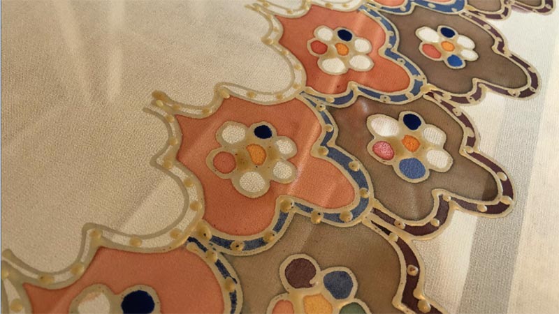 Fosca Batik – Dettaglio di un foulard in seta dipinto a mano