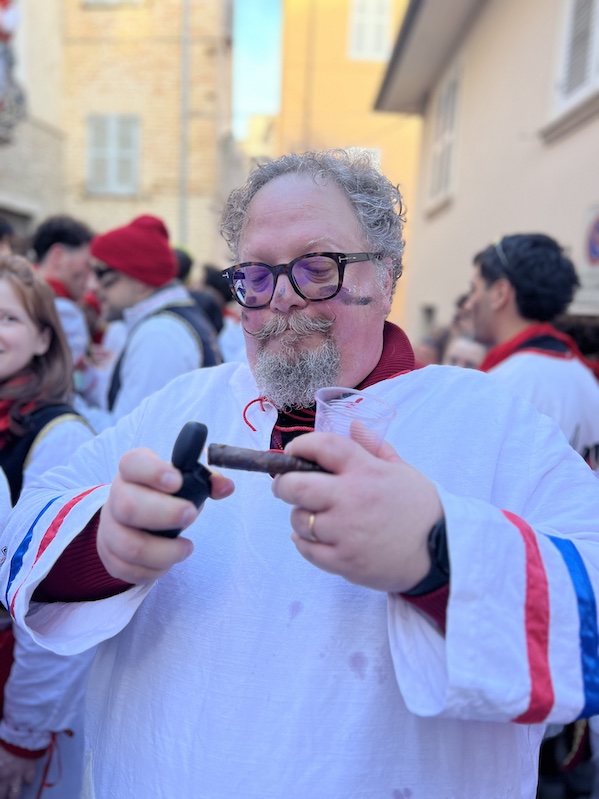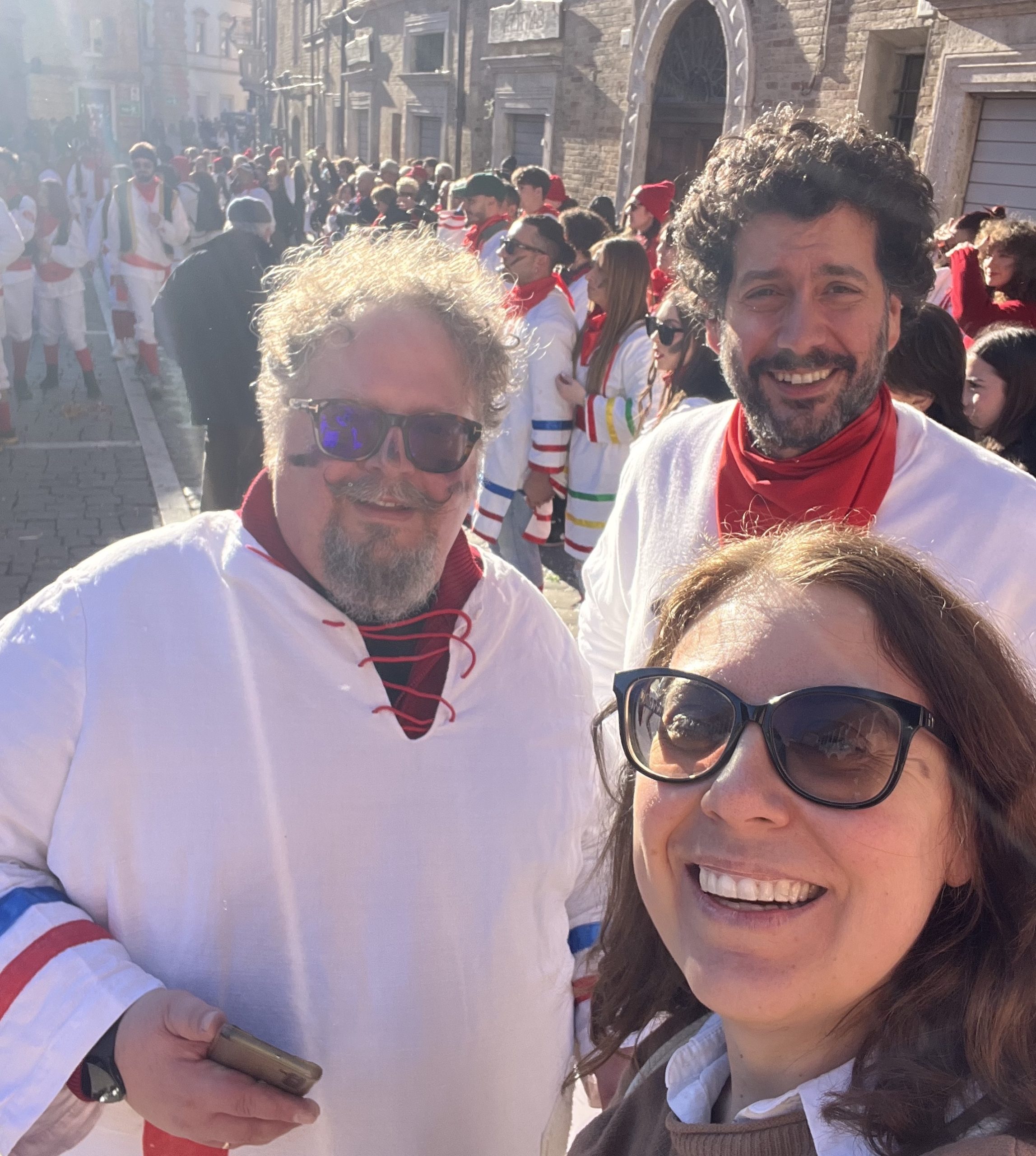 Andai per la prima volta a Lu Bove Fint ai tempi dell’università, un mio caro amico Offidano, e vi metto anche la foto, è uno dei pilastri di questo evento! e dopo due decenni, sono tornata e devo dire che mi sono divertita ancora di più. Ma cos’ha di particolare questo carnevale?